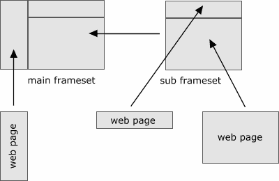 I'm not too fond of frames myself. The layout of normal website pages is far better and easier done with tables. But there are situations where their use is acceptable or even unavoidable. Like for instance when you want to show a set of external links and the linked pages at the same time. Switching back and forth would be the only other option. Which may be quite cumbersome. Frames are a construct to show several web pages in one browser window. You create a page with sub windows, in which you show other pages. Those other pages may contain yet other framed pages. The first page is in fact not a normal web page, but a "frameset" containing one or more framed web pages. To understand frames, it is very important that you grasp this concept.